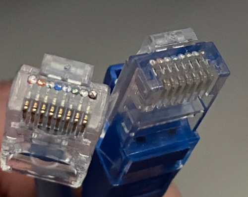• get the wires in the right order and insert into the RJ45 connector and crimp