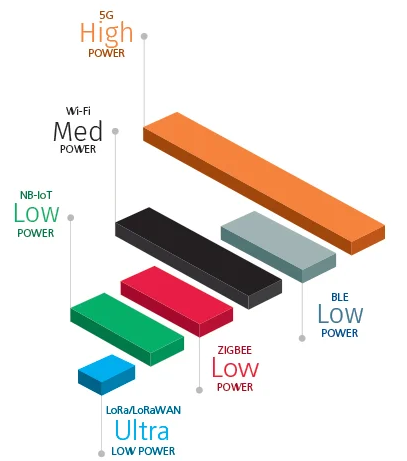250 messages of 12 bytes per day | 2.402 - 2.482 | 30-50 km in rural areas 3-10 km in urban settings 1,000 km in line-of-site applications |