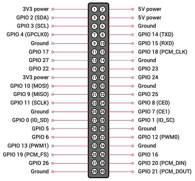 • Raspberry Pi standard 40 pin GPIO header (fully backwards compatible with previous boards)