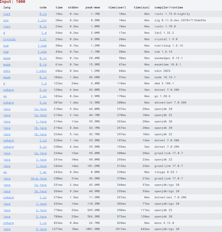 These graphs are from comparative benchmarks of the simple algorithms that are easily written in other languages.